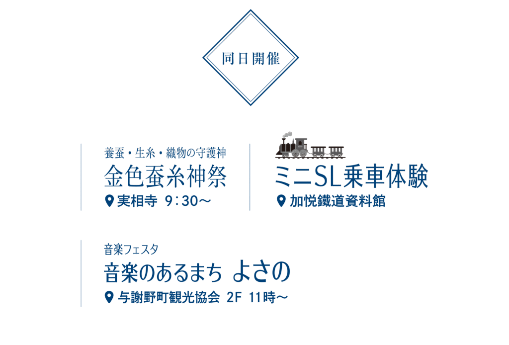 主催︰きものでぶらり♪ちりめん街道実行委員会後援︰与謝野町/与謝野町観光協会/与謝野町商工会/加悦区